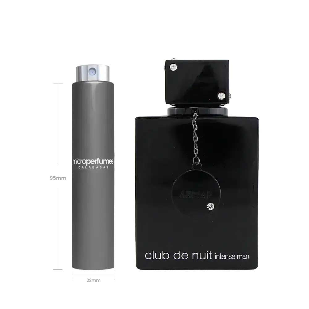 Club De Nuit Intense Man (Eau de Toilette) by Armaf is a fragrance for men. introduced in 2015. It opens with zesty and fruity notes. moves to a floral and smoky heart. and settles on a warm and sensual base for a bold. sophisticated. and captivating signature. This versatile scent is ideal for evening wear. offering a commanding presence that suits both formal events and casual outings during cooler seasons. Our 5 ml travel spray delivers 60-75 sprays for 2-3 weeks of wear. making it a best-selling size that’s perfect for everyday use and carry-on travel.