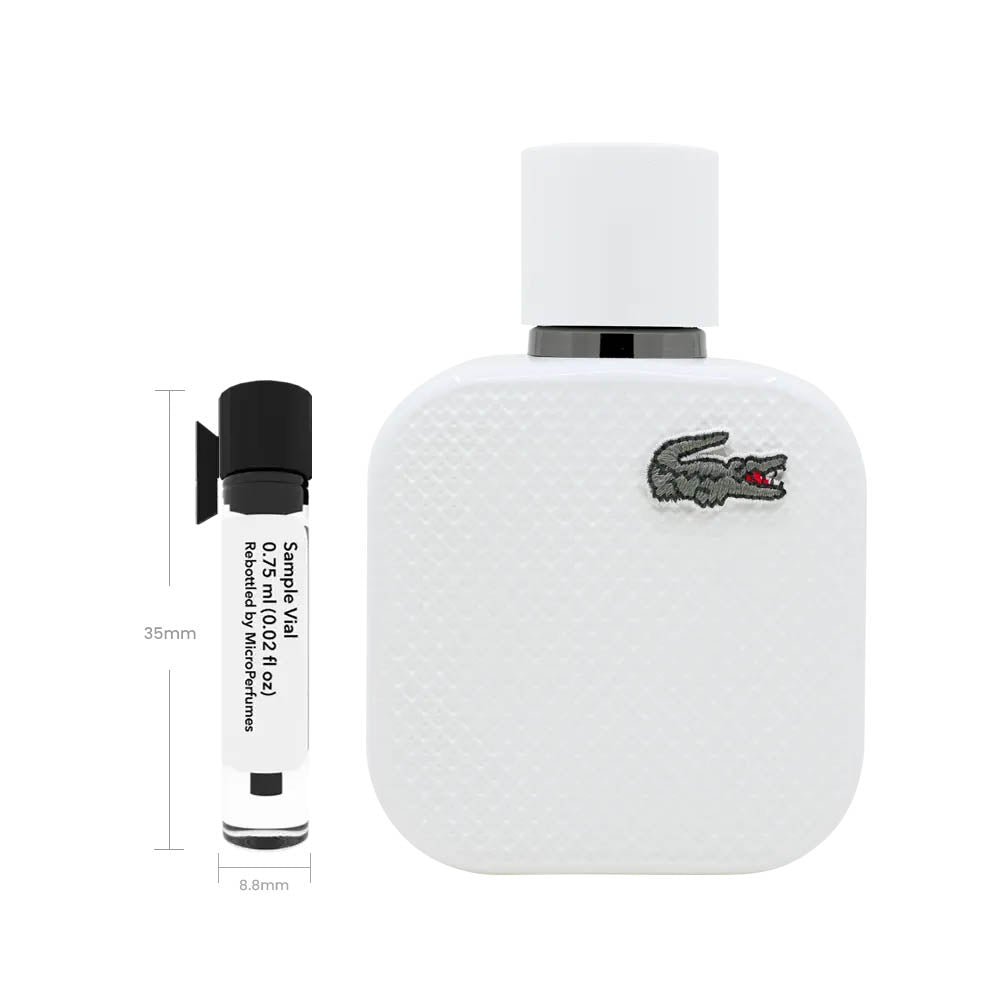L.12.12 Blanc (Eau de Parfum) by Lacoste is a fragrance for men. introduced in 2021. It opens with zesty and spicy notes. moves to fresh and invigorating tones. and settles on warm and woody accords for a bold. masculine signature. This scent is ideal for daytime wear. offering a refreshing yet comforting presence that complements both casual and formal settings. Our 0.75 ml sample vial gives you enough fragrance for several wears. making it a low-risk way to explore a scent without commitment.