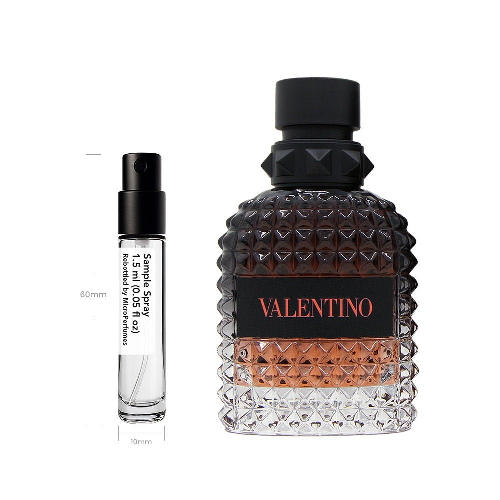 Uomo Born in Roma Coral Fantasy (Eau de Toilette) by Valentino is a fragrance for men. introduced in 2022. It opens with crisp and spicy notes. moves to aromatic and floral tones. and settles on warm and earthy accords for a vibrant. contemporary signature. Inspired by the golden hour in Rome. this scent captures the city’s dynamic energy. making it ideal for spring and summer evenings. whether for casual outings or formal events. Our 1.5 ml sample spray provides 20-25 sprays. making it an ideal option for several days of testing or travel.