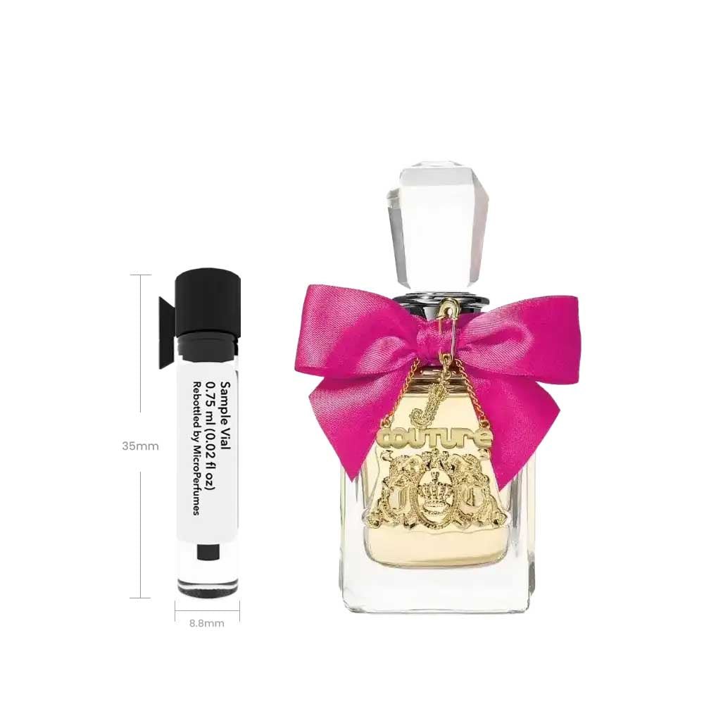 Viva La Juicy (Eau de Parfum) by Juicy Couture is a fragrance for women. introduced in 2008. It opens with sweet and fruity notes. moves to floral and elegant accords. and settles on warm and gourmand tones for a playful. feminine. and sophisticated signature. This delightful blend is perfect for daytime wear. adding a touch of elegance to casual outings or enhancing evening events with its charming allure. Our 0.75 ml sample vial gives you enough fragrance for several wears. making it a low-risk way to explore a scent without commitment.